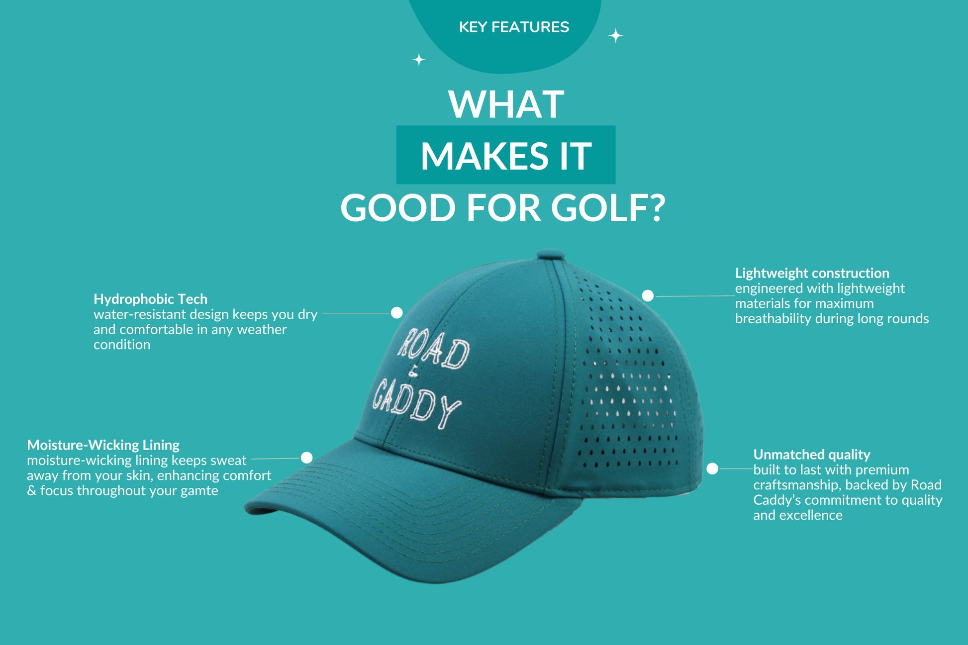 Road Caddy Sweat Resistant Uni-Sex Performance Hydro Golf Hat One Size Fits All - Unrivaled Comfort and Style