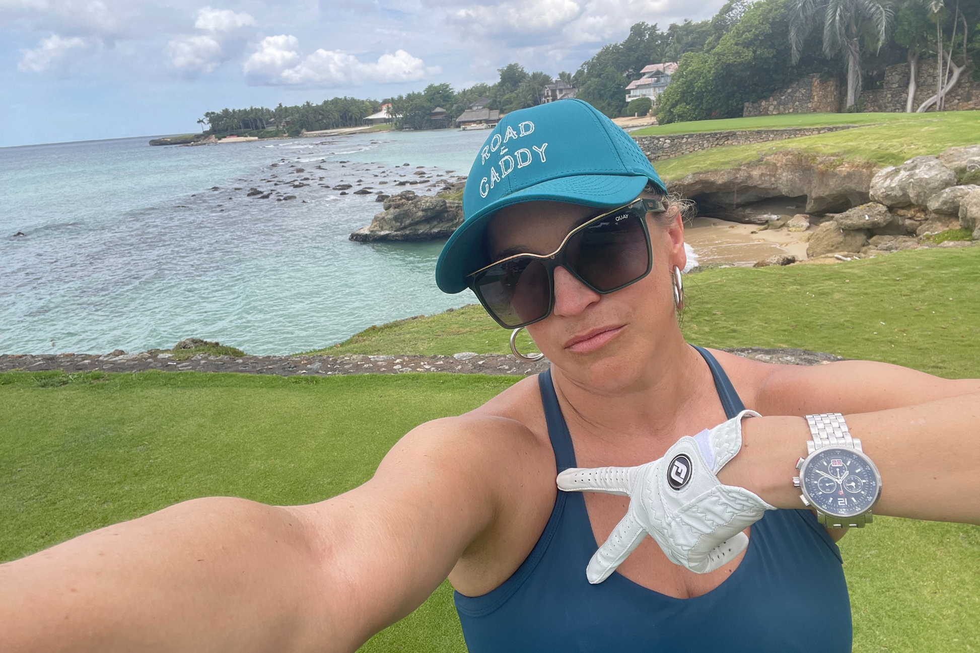 - š„ Stylish Design: Sleek and modern design with the Road Caddy logo embroidered on the front, making a bold statement on the course.